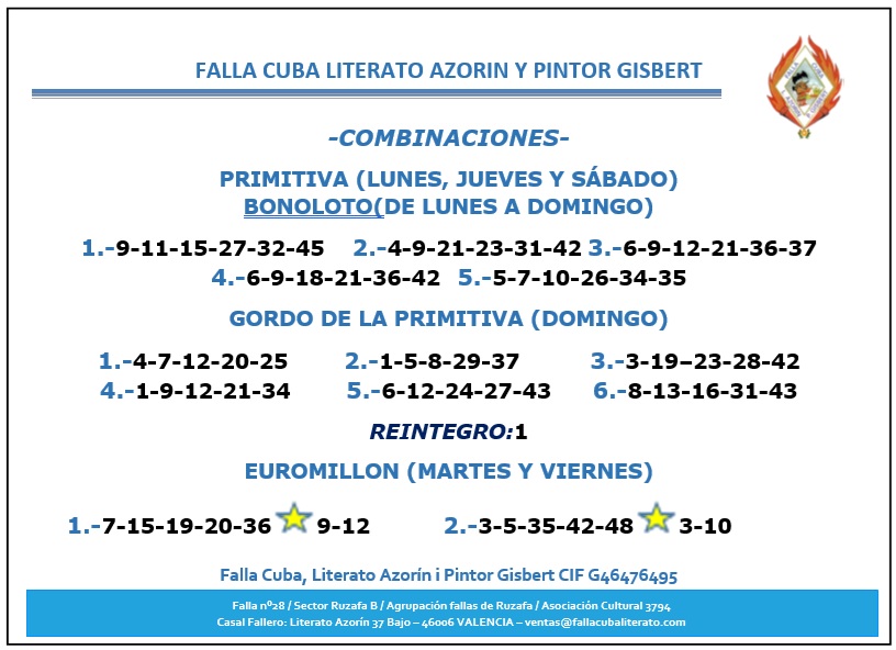 Estas son las convinaciones con las que cada semana participamos en los sorteos de La Primitiva, Euromillones, El Gordo de la Primitiva y Bonoloto,
